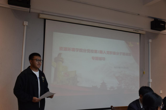 会上,入党积极分子A2121班曹嘉玮同学和发展对象A2031班程珊同学分别做了表态发言。表达了矢志不渝跟党走,争当先锋模范,争取早日成为一名真正的、光荣的中国共产党党员的愿望和决心。