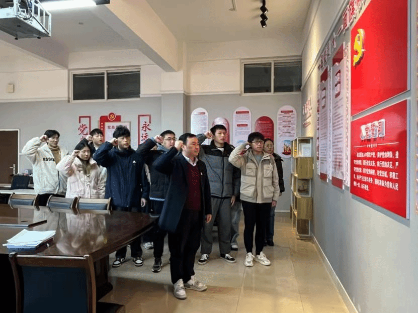 “我志愿加入中国共产党,拥护党的纲领,遵守党的章程,履行党员义务,执行党的决定,严守党的纪律,保守党的秘密,对党忠诚,积极工作,为共产主义奋斗终身,随时准备为党和人民牺牲一切,永不叛党。”在领誓人肖国光书记的带领下,党支部成员和全体预备党员们列队面向党旗,举起右手,齐肩握拳,庄严宣誓。他们的声音整齐而洪亮,眼神中透露出坚定的信念和对未来的无限憧憬。