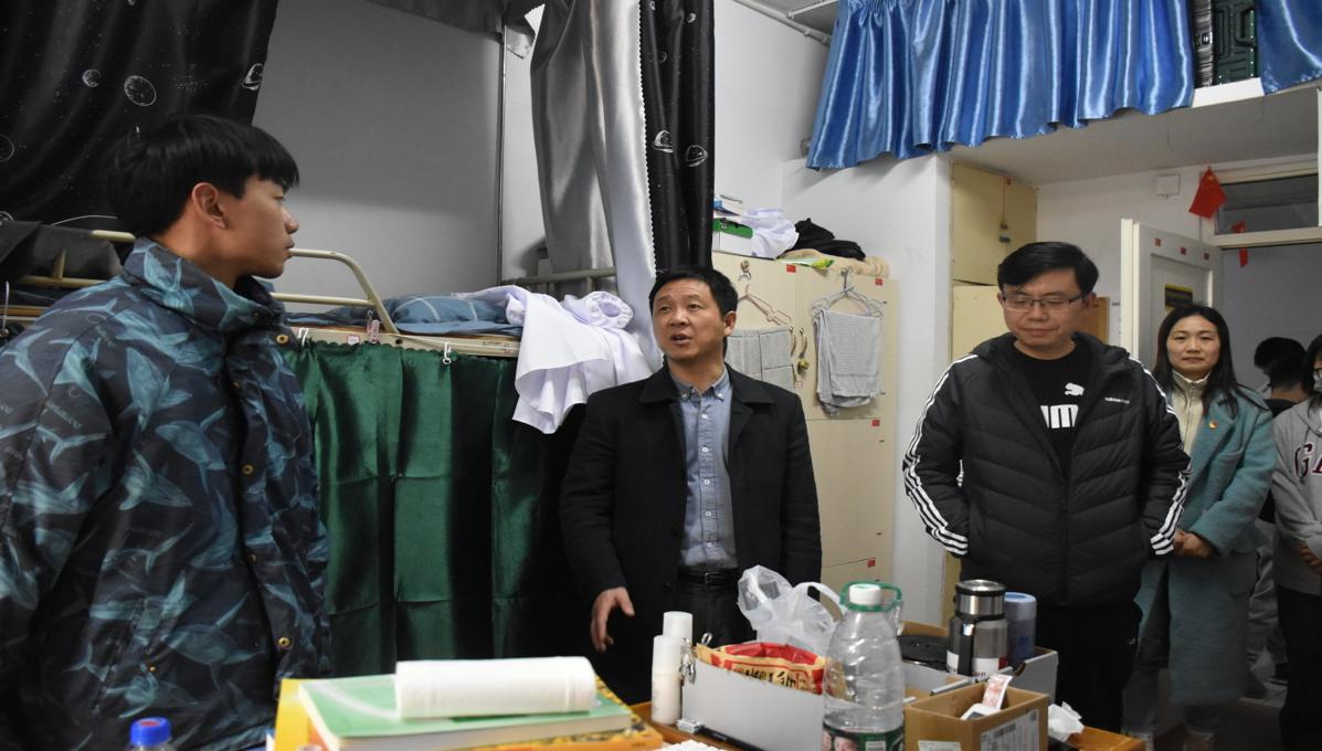 为进一步加强学生宿舍安全管理,深入了解学生思想、生活及学习情况,为新学期营造良好学习生活环境,3月1日下午,leyu乐鱼在线登录入口党委书记杨期勇,党委副书记张杨帆,学生管理科科长龚双双,学生教育思政科科长肖国光一行对leyu乐鱼官网学生宿舍进行走访排查。