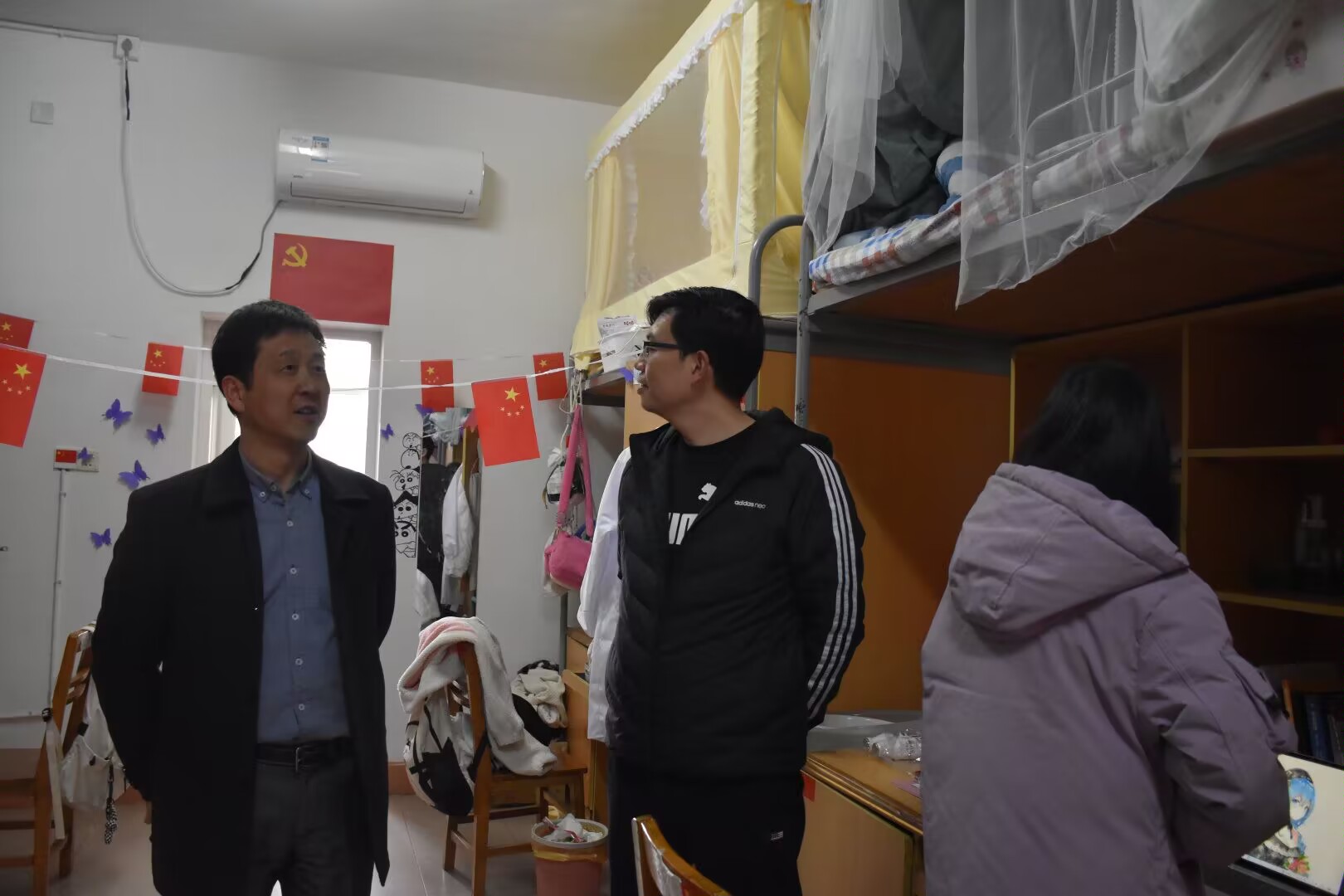 走进宿舍,老师们重点检查了学生宿舍用电、用水的安全以及卫生情况。院领导围绕返校情况、学习、生活状态等问题与同学们进行了深入交流,了解学生思想动态;并叮嘱同学们要遵守宿舍用电安全要求,不使用大功率电器,做到人走断电,提高安全意识,防患于未然。同时勤打扫寝室卫生,多外出锻炼提高身体免疫力。