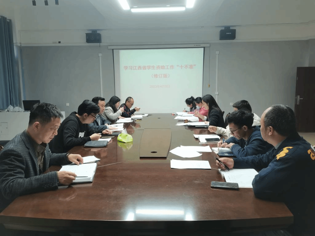 为了落实国家和全省学生资助政策,进一步做好学生资助工作,4月9日下午,leyu乐鱼在线登录入口在厚德楼709组织全体班主任辅导员学习《江西省学生资助工作“十不准”(修订版)》。学院党委书记杨期勇,副书记张杨帆、全体辅导员及班主任参加了会议。学生科科长龚双双主持学习会。