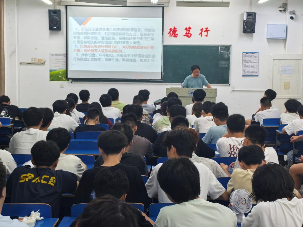 为切实提升学生识别和防范电信网络诈骗的能力,leyu乐鱼在线登录入口于近日组织大一各班级开展反诈骗专题课堂,由思政科科长肖国光、学生科科长过七根、学生科辅导员王勇和郑锋担任主讲,为学生带来一堂生动且实用的防骗知识课。