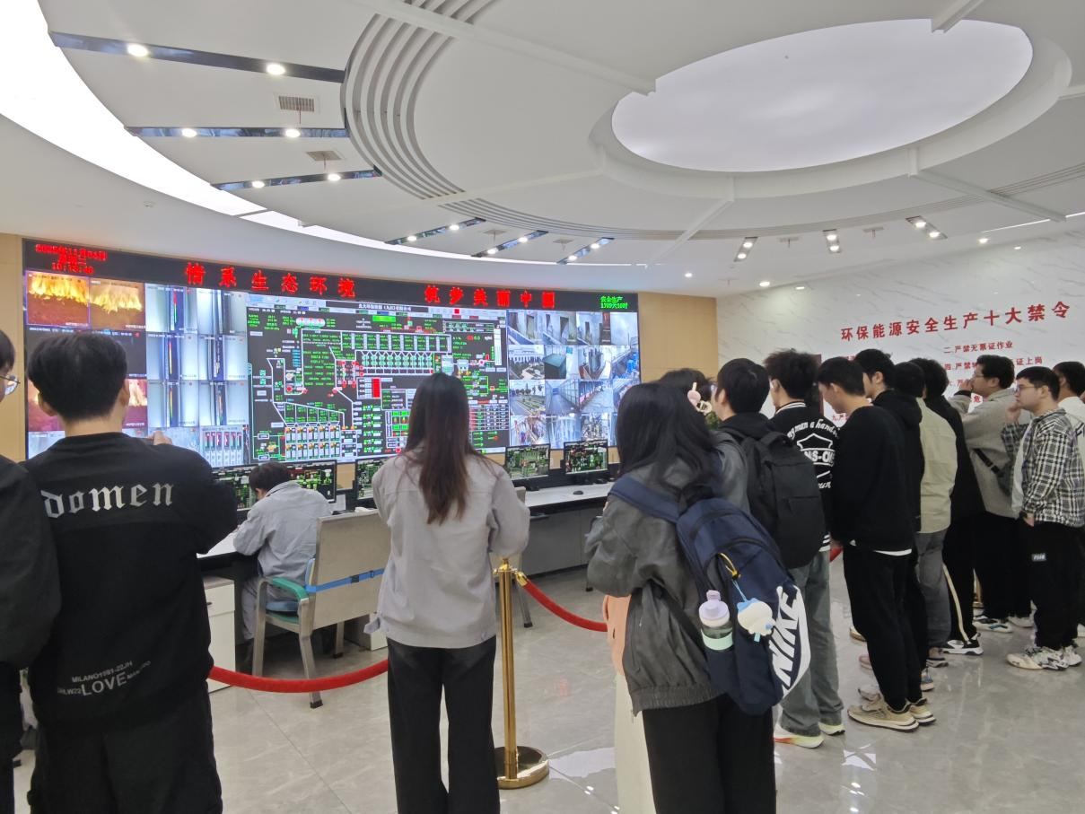 在光大环保能源(九江)有限公司相关负责人的陪同讲解下,学院师生首先观看了企业宣传纪录片,系统了解了公司在固废处理、清洁能源等领域的创新技术和绿色发展理念。随后,师生们实地参观了环保教育展厅、中央控制室、垃圾吊操作区等核心生产区域,通过专业人员的现场讲解,深入了解了生活垃圾从进场到焚烧发电的全过程工艺流程。整洁现代化的厂区环境、先进的技术设备和严格的安全环保标准,给师生们留下了深刻印象。