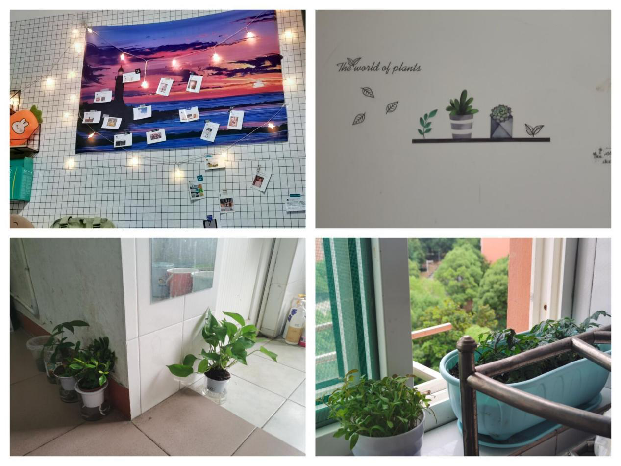 寝室装扮融入多元素文化,让同学们的梦想在此绽放,青春也在此行动。一载四年,关爱同行,互爱,我们感受;互助,我们同追求。微笑是我们言语,团结是我们共同行动,旋转自我,筑就非凡。资环学院开展寝室文化节活动,以友谊之花开满全寝,关爱之灯照亮全寝。此次寝室文化节活动的举办不仅美化了宿舍环境,还给同学们提供了一个展示宿舍特色的平台,也培养了同学之间的集体荣誉感,增强了寝室凝聚力,更好地发挥了以良好的室风带动优良学风、作风建设的作用,使得同学们形成关爱他人的良好风尚和营造出一个温馨、和谐的寝室环境。
