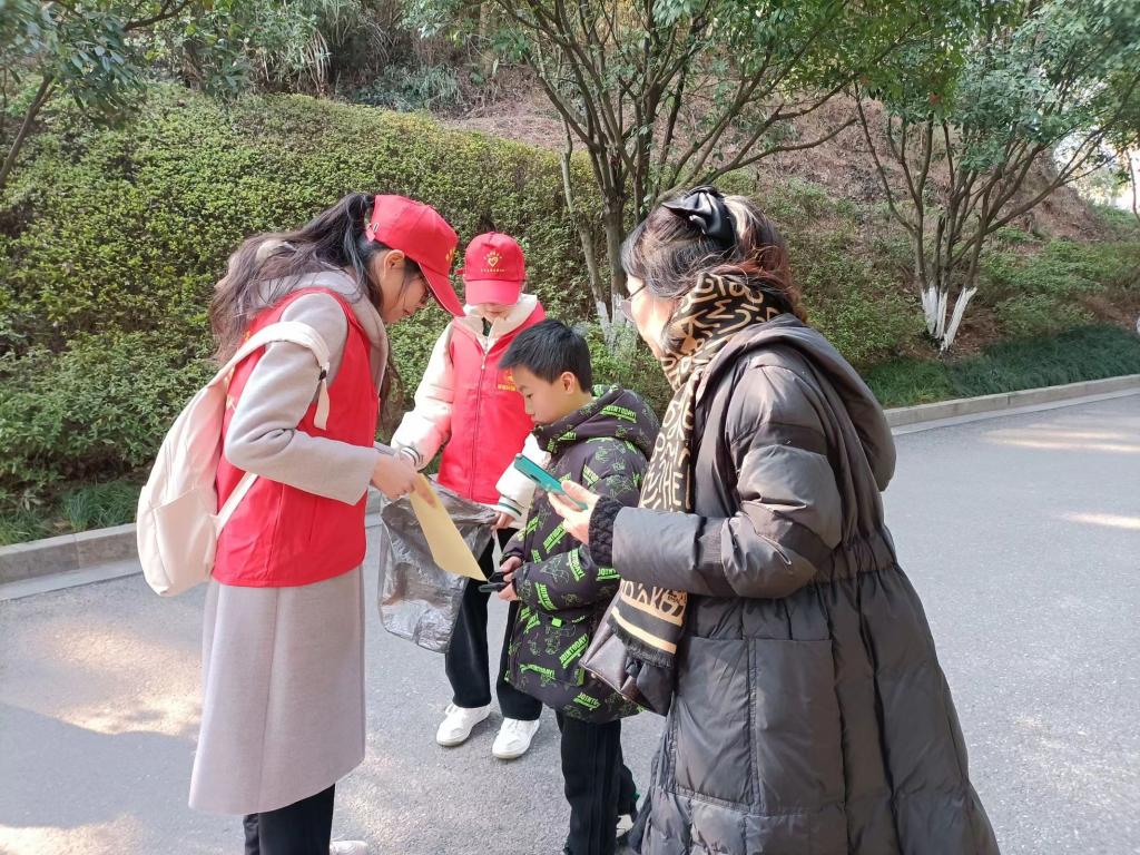 在南山公园内,leyu乐鱼官网学子积极投身到生态文明行为及意识宣传活动当中,对乱停乱放、乱扔乱倒行为进行劝阻,手拿环卫夹、垃圾袋、等工具,将垃圾进行清理,拾捡道路上的烟头、白色垃圾,清扫落叶等,并在此过程中对经过的路人进行环境保护美丽清洁的宣讲。身穿红色志愿服的他们,用实际行动践行着绿色理念,在这鸟语花香的公园里,筑起一道道靓丽的风景线。