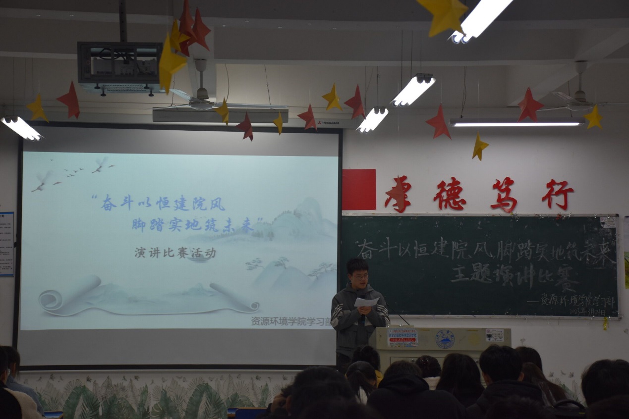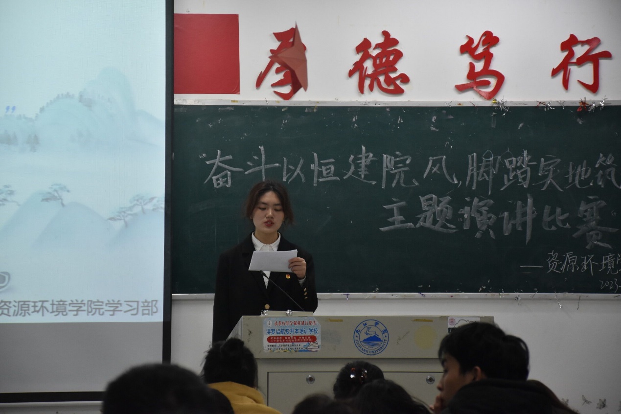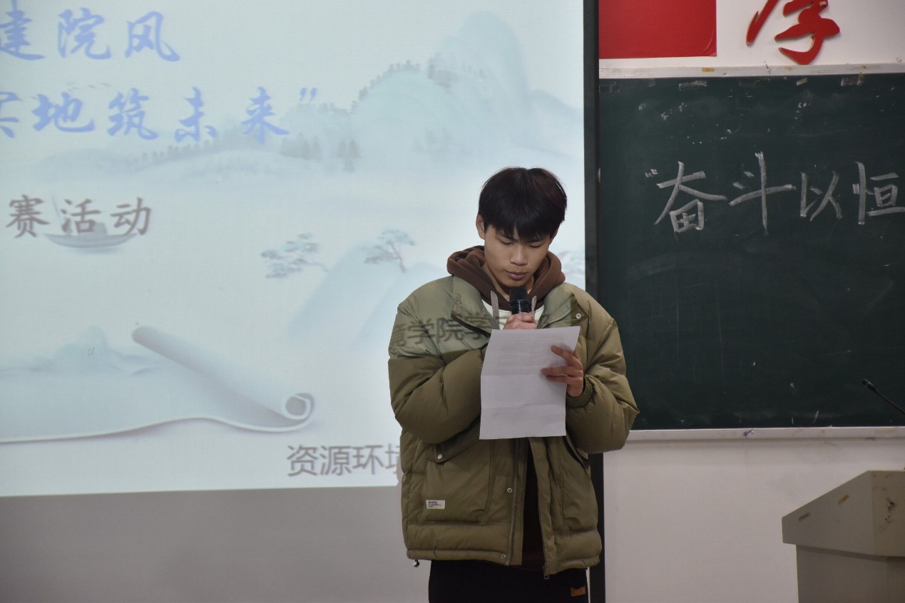 比赛过程中,选手们以饱满的热情,昂扬的精神状态,讲述自己对院风建设的理解。院风建设是文化建设的核心,应争做院风建设的发起者、领导者、推进者、促进者,需秉持科学精神,矢志追求卓越,共同传承优良院风学风,以奋斗书写我们的青春华章,用汗水浇灌我们的梦想之花。