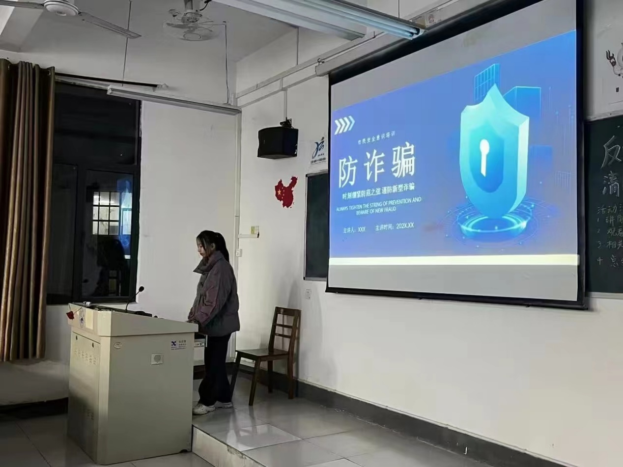 一曲团歌拉开活动的帷幕。活动中,各班主讲人与同学们共同分析相关案例,就案例中的现象积极发表自己的看法,通过问答方式,让同学们了解了这些典型案件中的诈骗方式以及基本处理手段。在不断发展的新时代,科技水平的提高使得不法分子有了更多的可乘之机,新式诈骗手段层出不穷。针对大学生实际生活,各班观看官方视频的介绍,了解了防范虚假信息诈骗的相关知识及防范对策,提高了同学们对诈骗集团诈骗手段的认识。