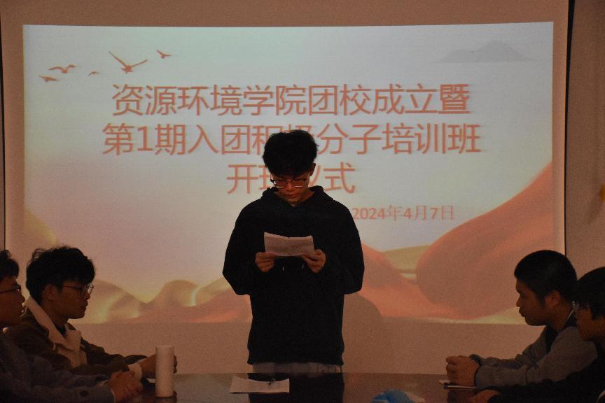 仪式结束后,学院团委书记肖国光给各入团积极分子上了入团第一课。第一课从共青团介绍与历史背景,团员基本权利与义务概述,入团条件及程序说明等方面开展,并且表明了入团积极分子应该意识到理论与实践相结合的重要性,不仅要在理论上掌握团的知识,更要将其运用到实际行动中,通过自己的行为去践行团的宗旨和理念,并且坚定理想信念,树立正确的世界观、人生观和价值观,努力成为有理想、有道德、有文化、有纪律的新时代青年。各位入团积极分子在本次活动中认真听讲,积极学习各项团的知识,最后在大家的学习讨论中结束了本次活动。