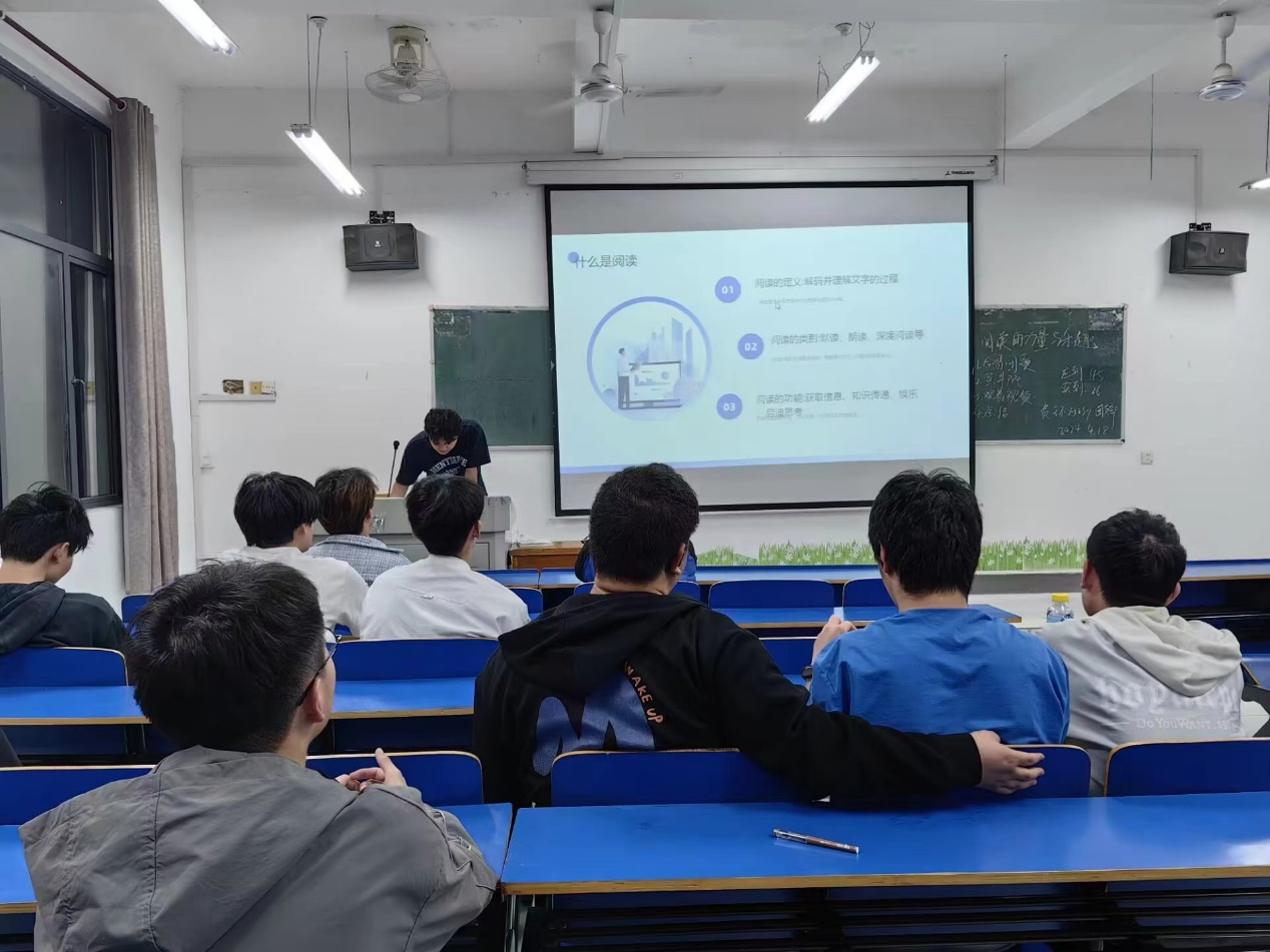 本次团日活动在同学们精彩的演讲和朗朗读书声中徐徐开展。活动中,同学们积极参与,主讲人首先与大家分享自己喜欢的书籍,随后,班级同学们从不同角度介绍自己喜欢的图书,畅谈自己读书的所思所想、所感所悟。同学们畅所欲言,尽情分享读书的收获与快乐,现场的每一位听众都能从中感受到阅读的温暖。