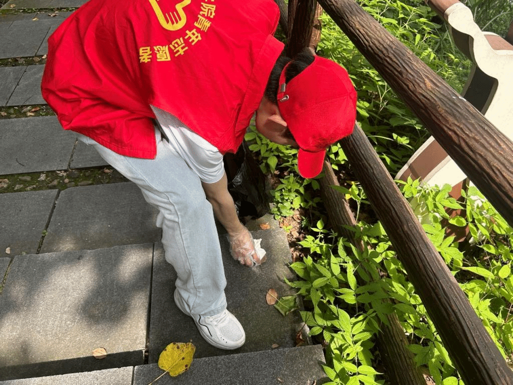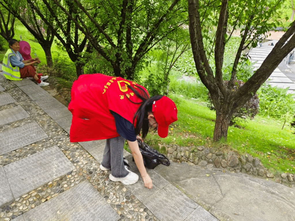 志愿者们绿色出行,自备垃圾袋,扫把等清扫工具,分组清理公园中的垃圾,且劝阻来往行人注意环保卫生。以身作则,使环保理念更进一步深入群众,促进了生态文明的建设。