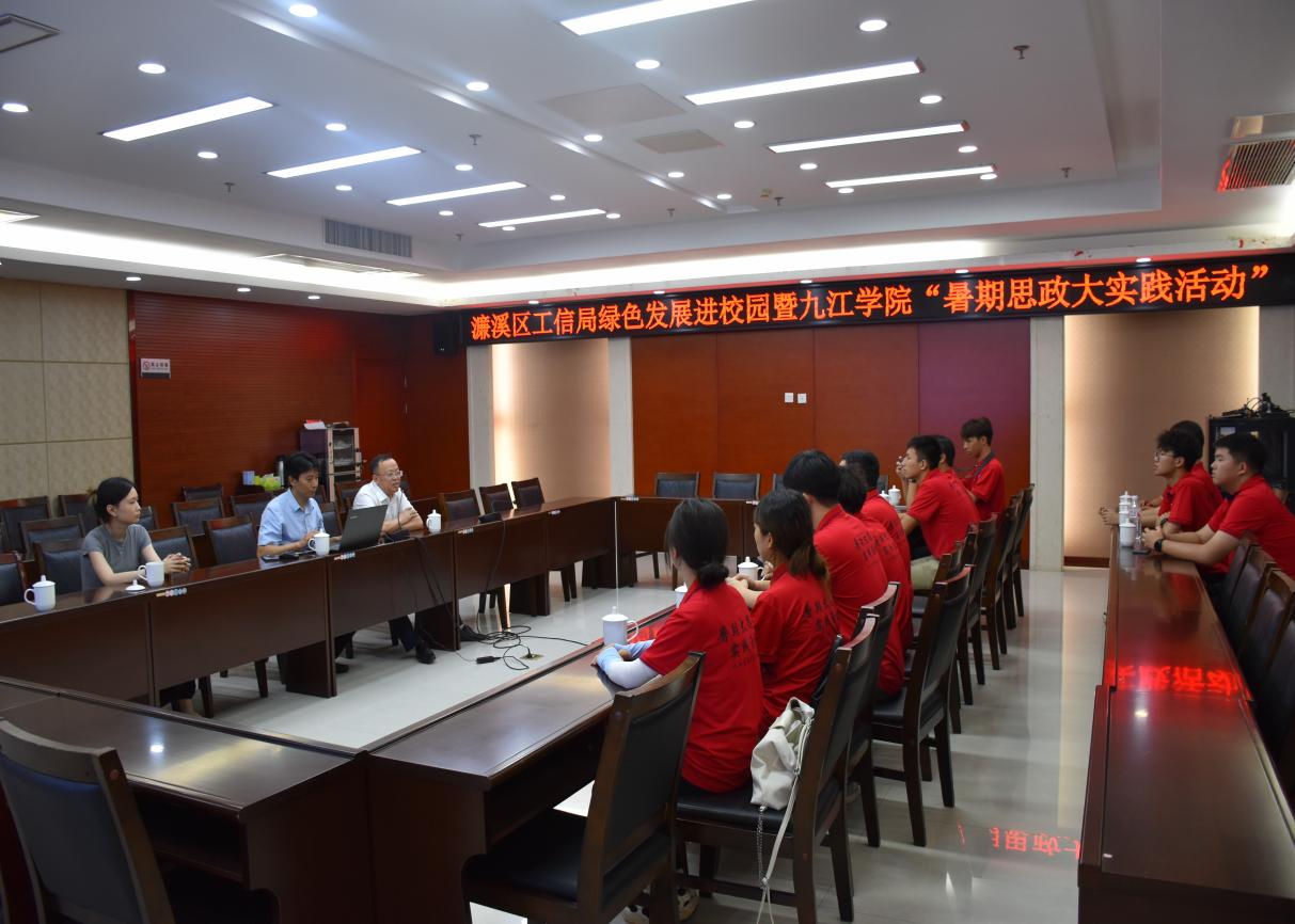 7月5日,生态文明分队来到九江市濂溪区工业园九江晶旭新能源有限公司和九江九宏新材料有限公司开展企业绿色发展实践调研活动。详细了解企业节能降耗、绿色低碳发展的路径,探寻企业创新发展、发展新质生产力等情况。实践活动结束后,分队与濂溪区工业和信息化局召开了以“绿色发展”为主题的座谈会。会上,同学们深入了解了濂溪区各企业的绿色发展状况,纷纷表示要从自身做起,积极践行生态文明建设和环境保护,在推进绿色发展和美丽中国建设中贡献青春力量。