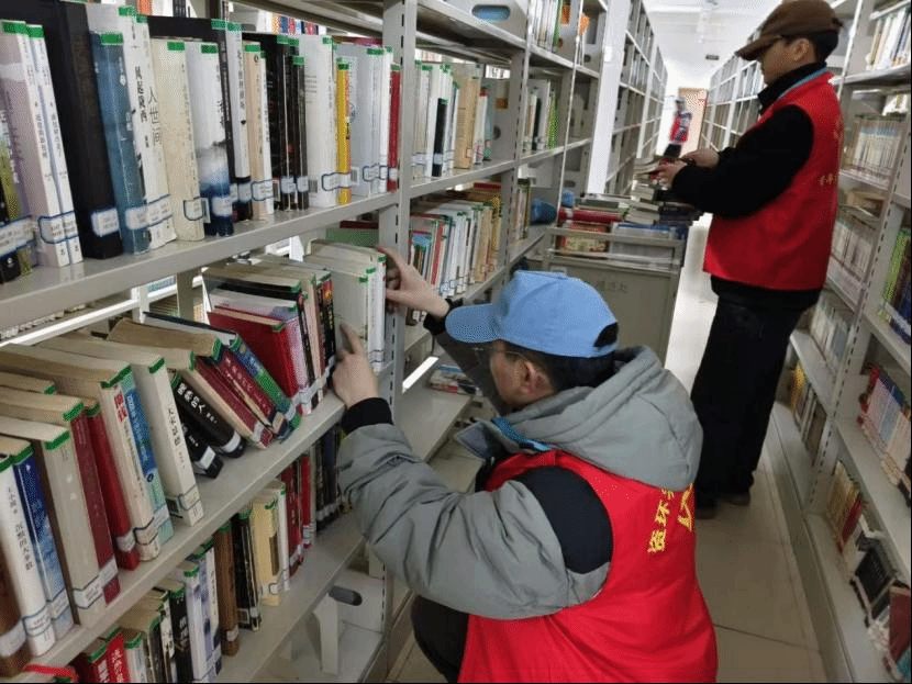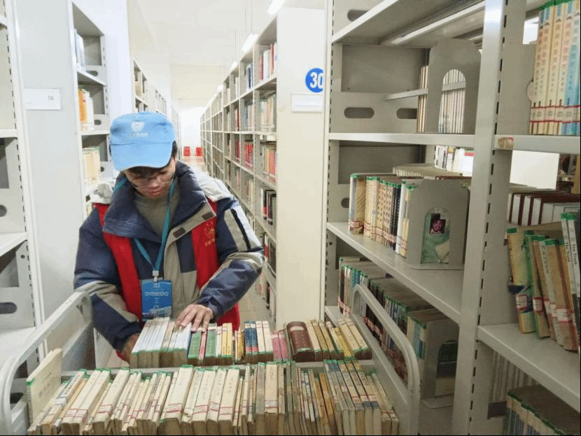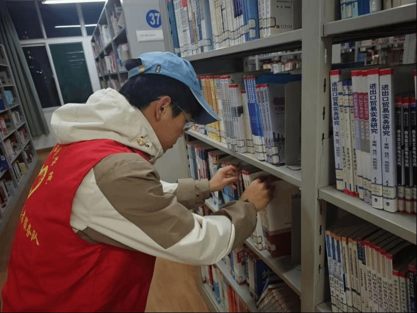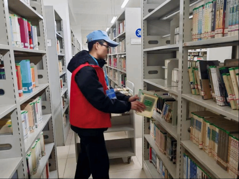 在此次志愿活动开始时,志愿者们迅速的接收到各个指令,快速熟悉流程,开启忙碌有序的一个晚上。志愿者们主要被安排在书架区域整理书架,他们在馆内工作人员的带领下精准的找到各个位置,依据图书分类索引。
