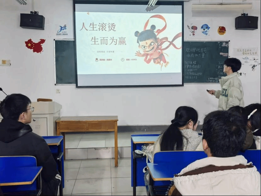 在齐唱团歌结束过后,团日活动准时开始。各班团支书和组织委员组织各班开展“观哪吒传奇,悟成长力量”团日活动,主讲人通过讲述电影中哪吒勇敢无畏、敢于反抗命运的精神,以及其面对困难的勇气和解决问题的能力激发了同学们的共鸣,引导同学们树立正确价值观,在成长路上坚定信念,实现自我价值。