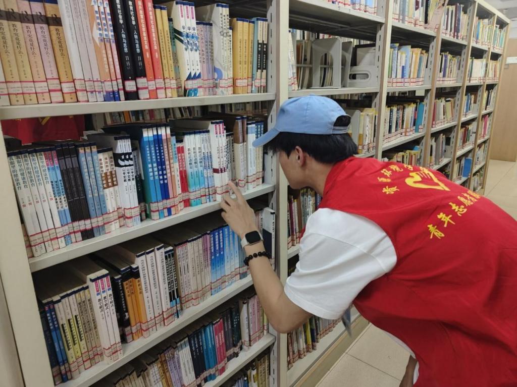 面对杂乱的待整理区域,志愿者们默契配合,有的细致分类,有的快速检索书号,有的小心翼翼将书籍插入对应书架。指尖在书脊上游走,沙沙的翻书声与轻柔的挪动声交织,如同奏响一曲知识归位的韵律。在他们的努力下,原本零散无序的书籍变得整齐划一,每一列书架都焕发出崭新的秩序感。书架间,志愿者们穿梭的身影成为独特风景。