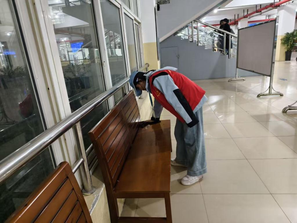 志愿者们的身影穿梭于静谧的图书馆内,迅速投入到有序的劳作中。书架前,轻柔的擦拭让落尘的层板重现光洁;阅览区里,专注的归位使错放的书籍各复其序。他们俯身于桌椅缝隙,清理藏匿的杂物;他们守候在期刊架旁,理顺散乱的报刊。全体成员以默契的配合与细致的动作,共同守护这一方书香净土,在保持馆内宁静秩序的同时,更让每一处角落都焕发出整洁与明亮。