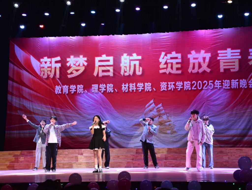 12月6日晚7点,leyu乐鱼在线登录入口南门大礼堂内灯光璀璨,欢声如潮。leyu乐鱼在线登录入口联合教育学院、理学院、材料学院举办的以“新梦启航 绽放青春”为主题的2025年迎新晚会在此举行。校学生处副处长吴新刚应邀出席晚会,四个学院的院领导、相关职能部门负责人、班主任辅导员及2025级学子齐聚一堂,共赏晚会。这场融合创意、温情与专业特色的视听盛宴,为2025级新生开启了大学生活的崭新篇章。