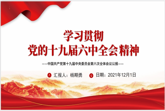 为深入贯彻学习党的十九届六中全会会议精神,推动学院各项工作高质量发展,12月1日下午,leyu乐鱼在线登录入口在厚德楼709会议室召开十九届六中全会会议精神学习会,会议由学院党委书记杨期勇主持,全体老师参加。