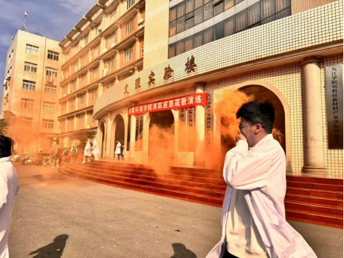 11月14日中午,消防应急疏散演练在文理实验楼顺利举行。学院党政领导、实验室管理人员及160余名师生共同参与。演练前,工作组全面检查场地设施,排除安全隐患,确保消防设备完好、疏散通道畅通。实验室负责老师现场讲解火灾报警流程、灭火器规范操作及实验室常见火灾隐患识别方法。随着演练信号响起,师生迅速反应,用湿毛巾捂住口鼻,弯腰低姿沿预定路线有序撤离至安全区域。整个过程组织严密、响应迅速,展现了师生良好的应急素养,切实提升了大家在火灾中的自防自救与协同疏散能力。